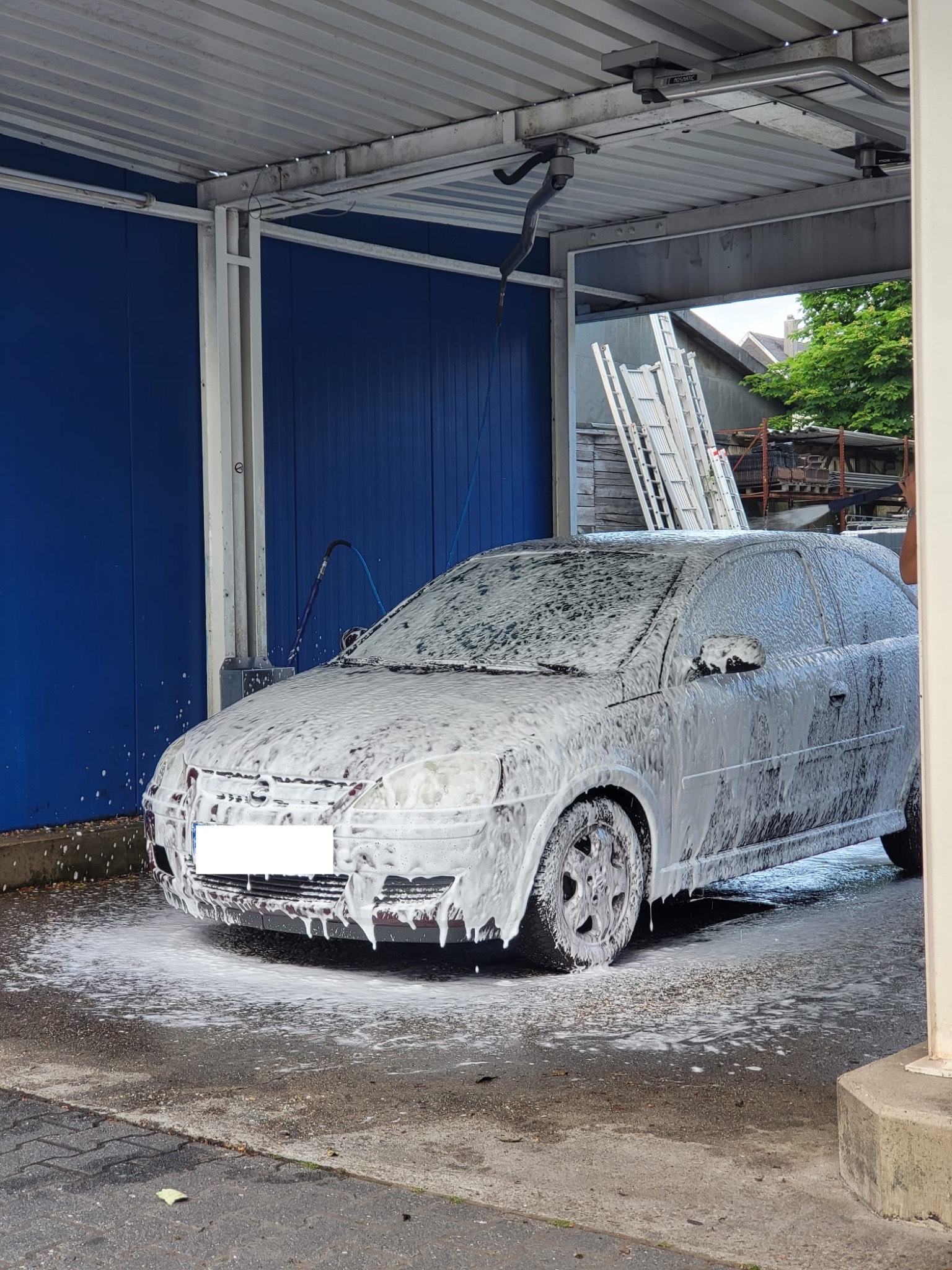 Darüber hinaus bieten wir auch unseren Kunden mit größeren Fahrzeugen eine Reinigungsmöglichkeit. In unserer offenen Box haben Fahrzeuge mit einer Höhe von bis zu 3 Metern die Möglichkeit, eine gründliche Reinigung zu erhalten. Für diejenigen, die lieber eine Eimerwäsche bevorzugen, steht eine Wasserentnahmestelle zur Verfügung. Zusätzlich bieten wir auch einen Mattenreiniger an, um sicherzustellen, dass Ihre Fußmatten gründlich gereinigt werden und auch der letzte Schmutz entfernt wird.